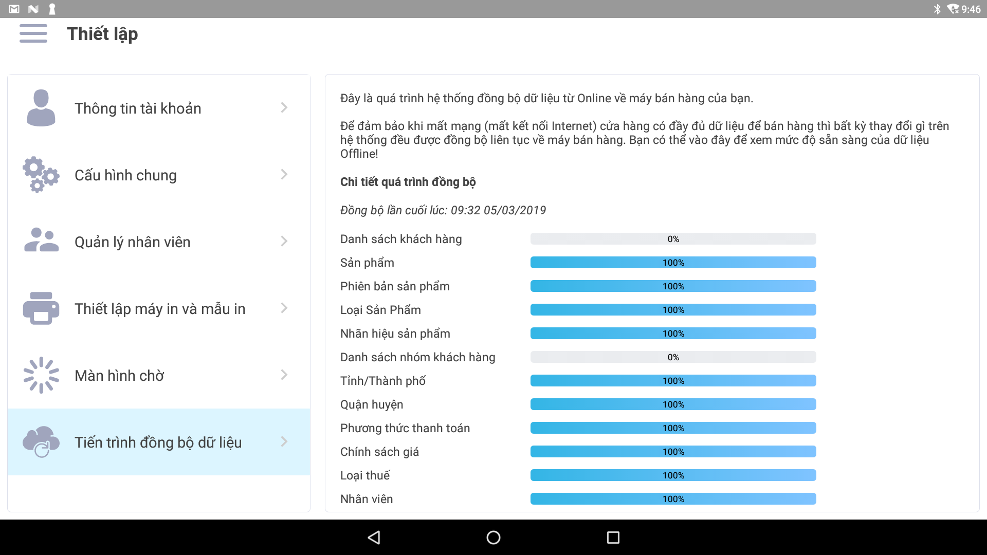 Bạn có thể vào Cấu hình > Tiến trình đồng bộ dữ liệu để xem mức độ sẵn sàng của dữ liệu Offline