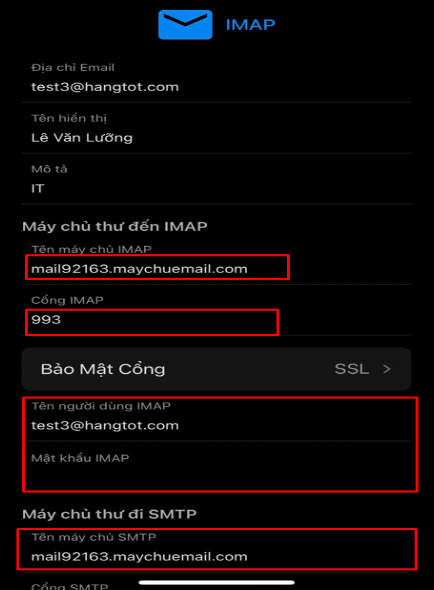 • Máy chủ thư đến IMAP: mail92163.maychuemail.com port 993.