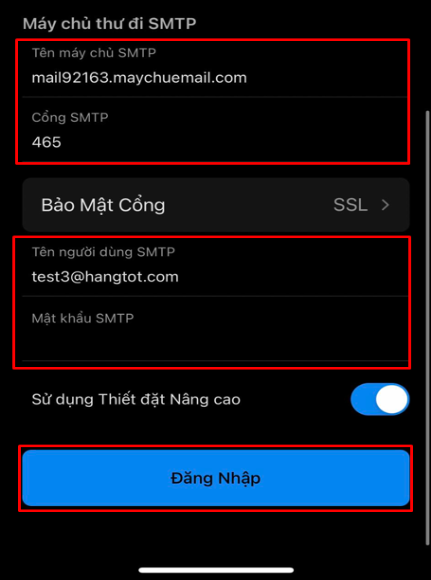 • Máy chủ thư đi SMTP: mail92163.maychuemail.com Port 465.
