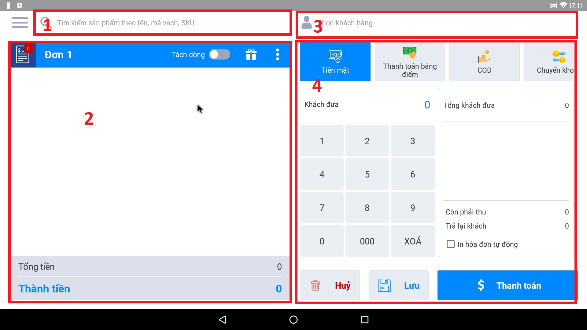 Có 4 thông tin cơ bản trên màn hình bán hàng: