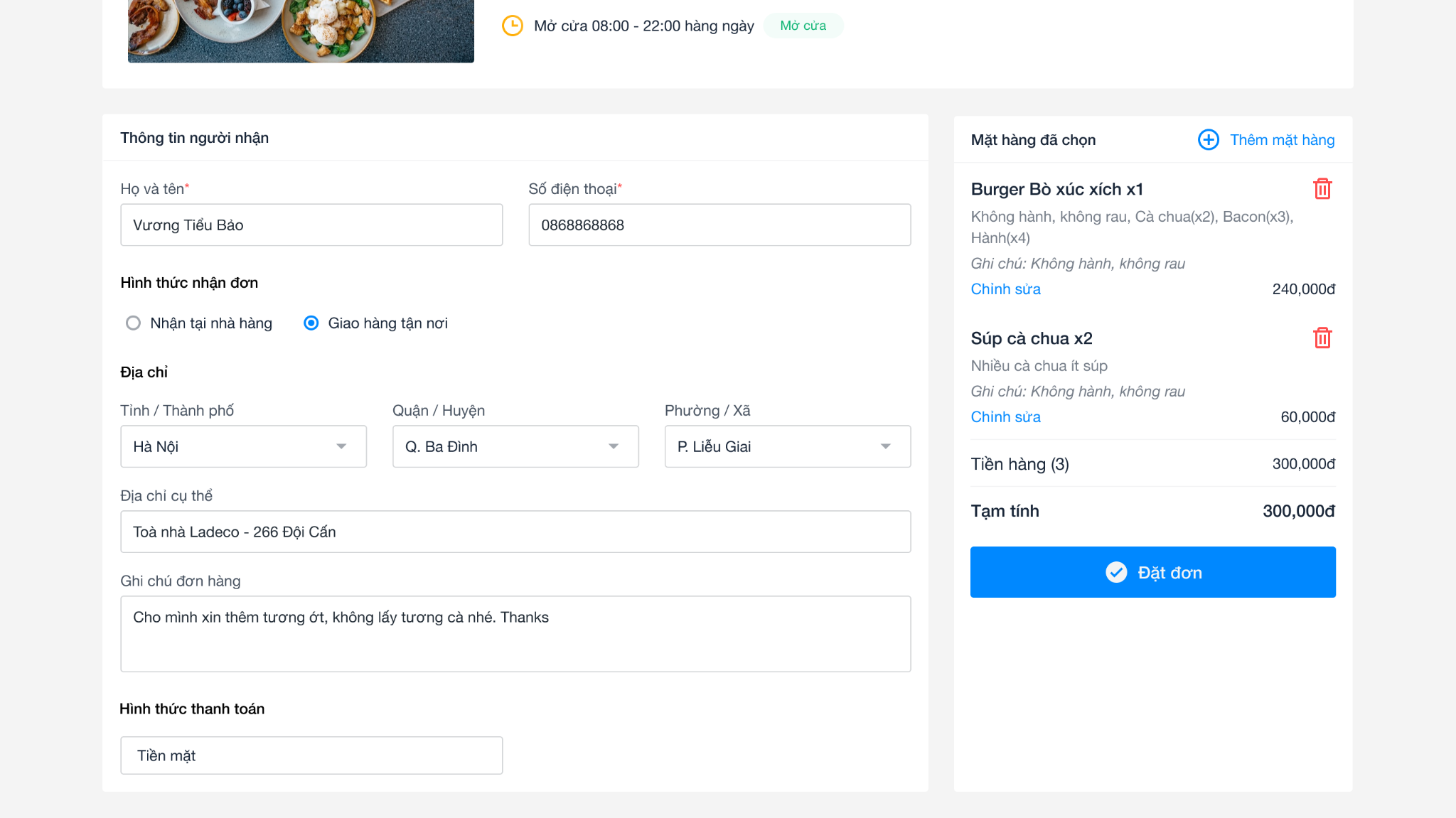 - Thiết lập khu vực giao hàng mà nhà hàng hỗ trợ.
