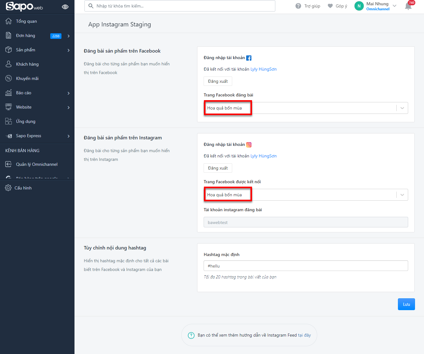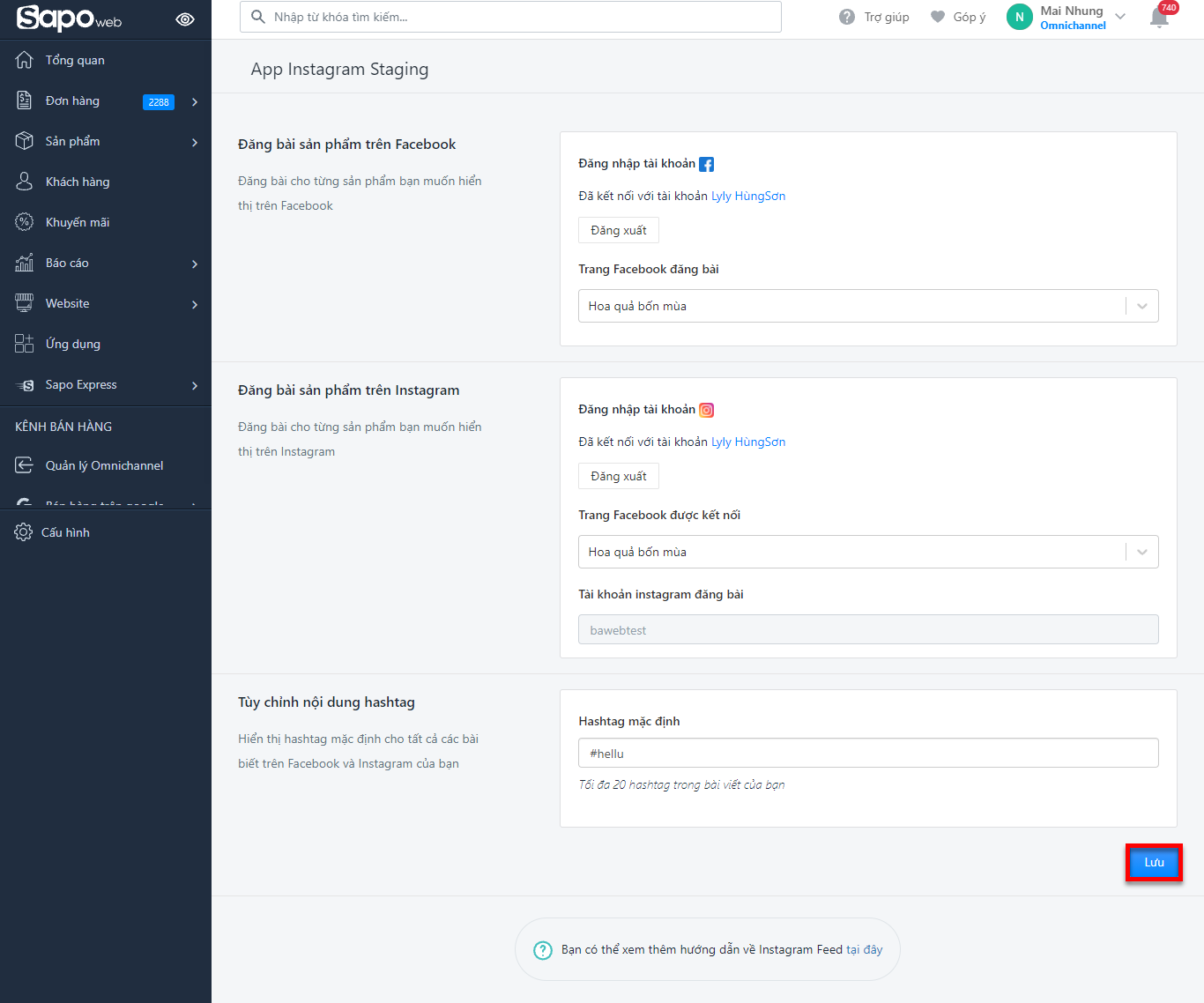 - Bước 3: Sau khi hoàn thành kết nối và cập nhật thông tin cấu hình, bạn ấn Lưu
