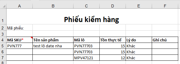 - Mã SKU: mã sản phẩm cần kiểm hàng
