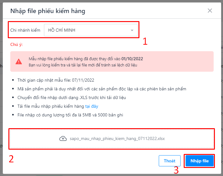 Để kiểm hàng bằng file Excel, bạn thực hiện theo các bước sau: