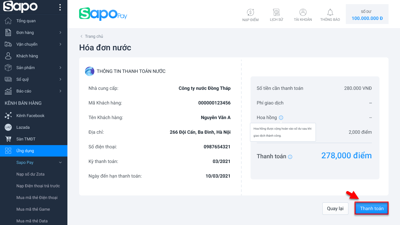 - Để tăng số dư hiện tại mà bạn hiện có, bạn cần Nạp điểm vào tài khoản Sapo Pay.